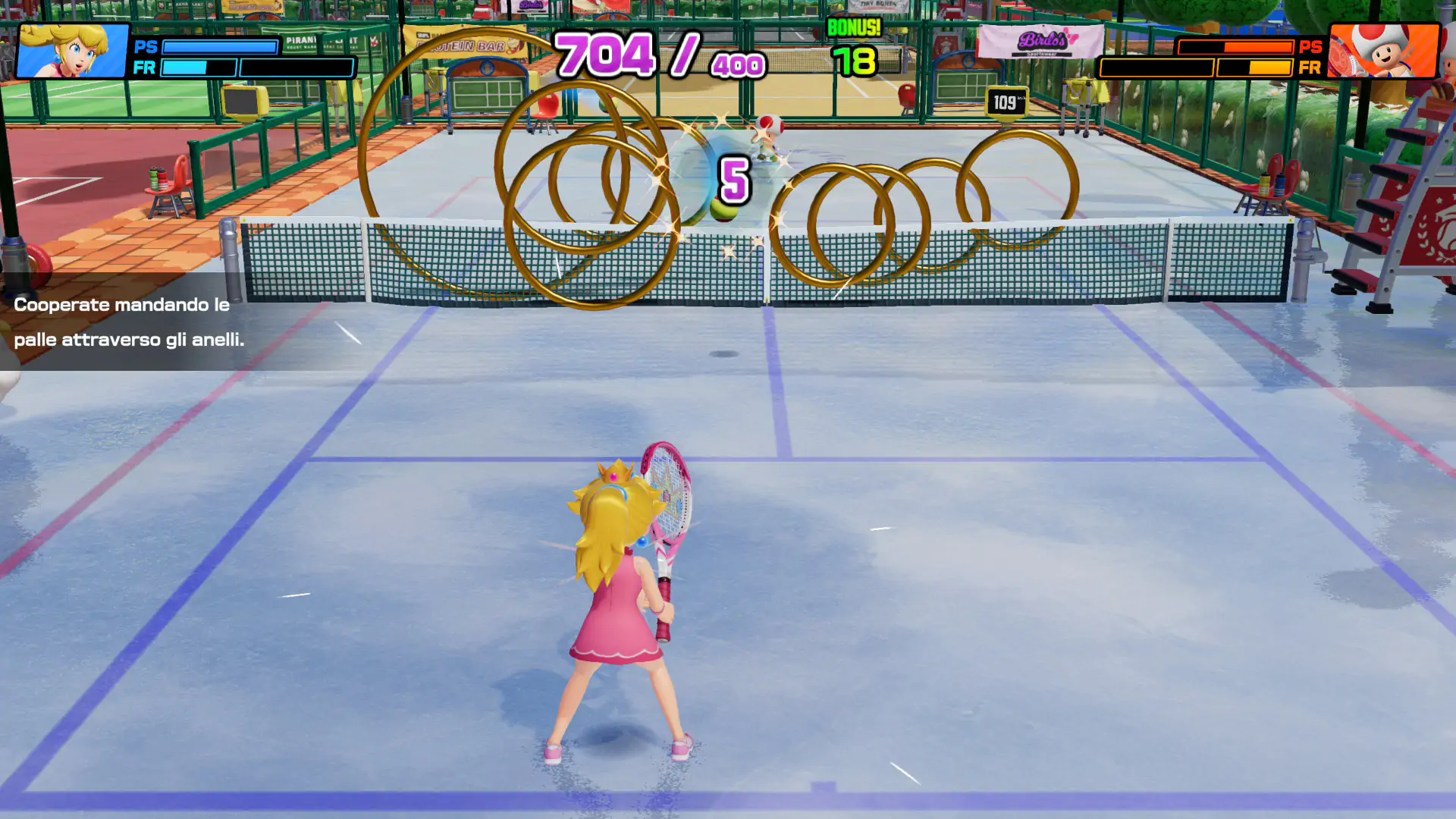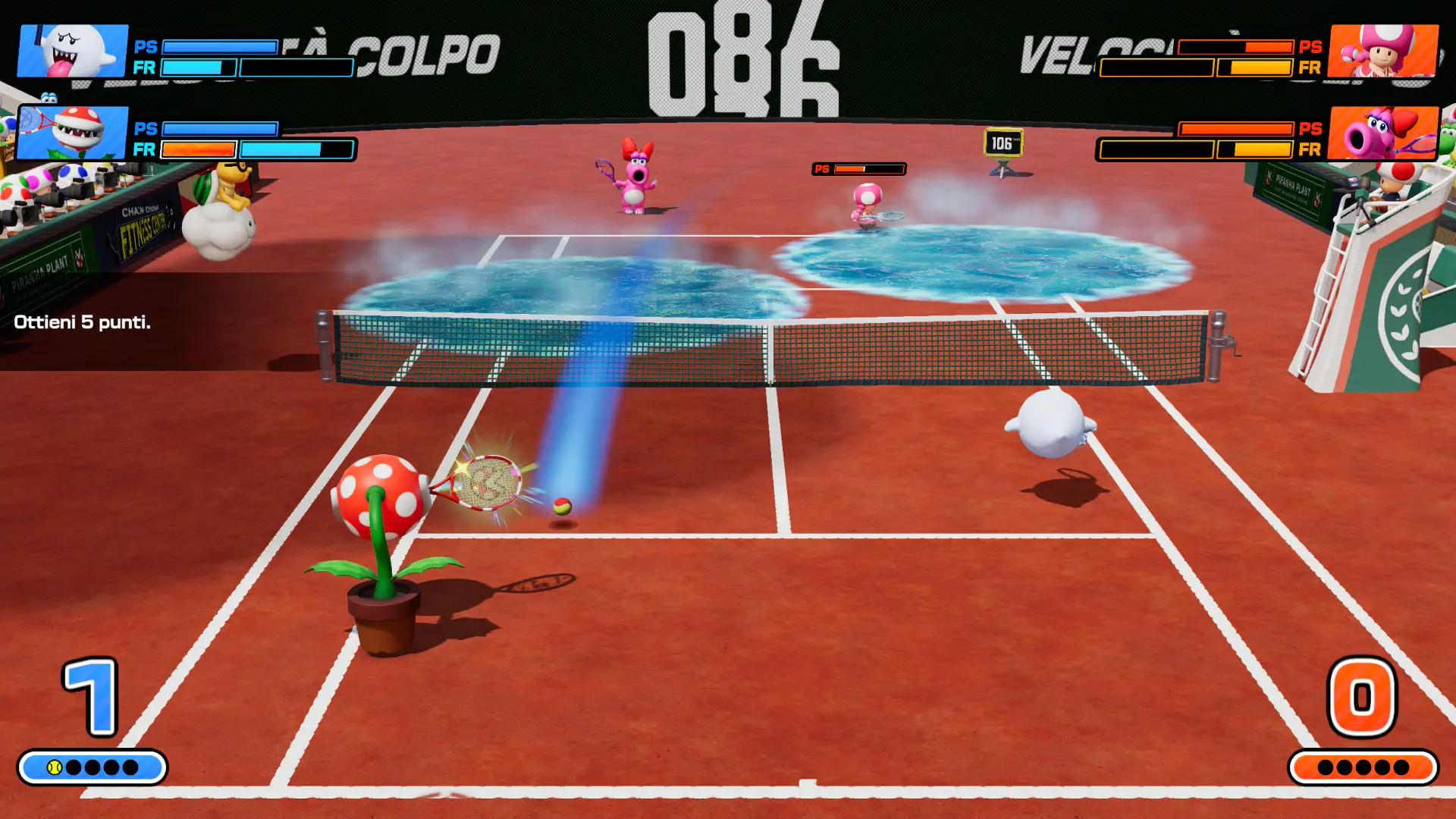 Aunque el recorrido entre zonas puede sentirse algo repetitivo, cumple bien su función pedagógica y ofrece varias horas de contenido antes de abrir por completo el resto de modos. Además, se incluyen retos adicionales como pruebas especiales que obligan a dominar conceptos clave del juego. En cuanto a contenido, esta entrega destaca por su amplitud. Cuenta con un plantel muy numeroso de personajes desbloqueables, múltiples estadios con superficies que modifican la velocidad y el rebote de la pelota, y una gran variedad de raquetas con habilidades especiales.