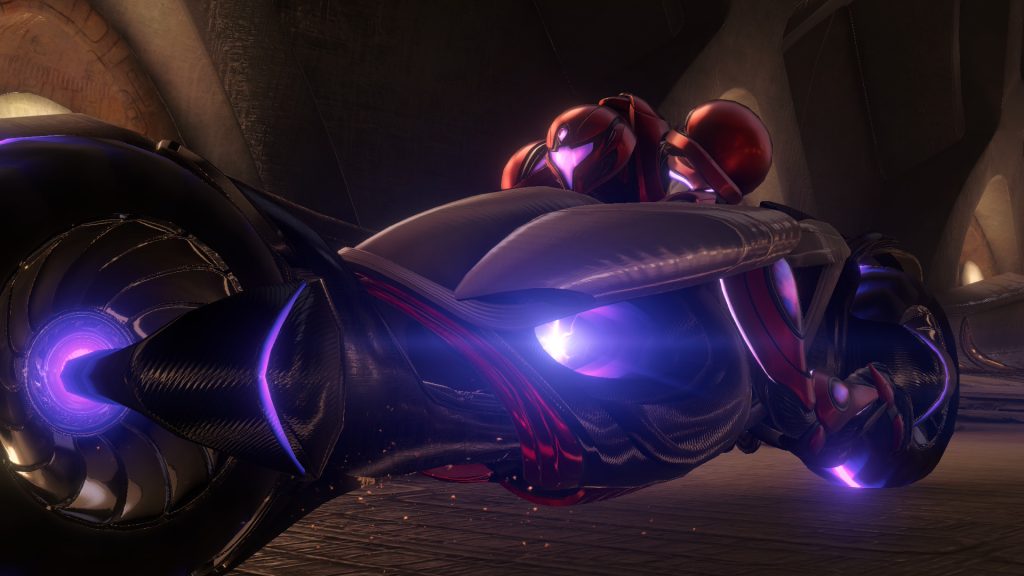 La introducción del desierto como espacio conector aporta una sensación de amplitud poco habitual en la saga, reforzada por Vi-O-La, el nuevo vehículo que permite desplazarse con mayor rapidez en ausencia de un sistema de viaje rápido. Este planteamiento encaja bien con la identidad exploratoria de Metroid Prime 4: Beyond, aunque también evidencia algunas limitaciones. La estructura obliga a recorrer áreas ya conocidas con frecuencia, lo que en ocasiones rompe el ritmo, especialmente cuando la narrativa impone tareas de recolección repartidas de forma poco inspirada por el mapa. En contrapartida, la manera en que la historia del mundo y de sus habitantes se va revelando a través del entorno y de elementos dispersos resulta más acertada, manteniendo ese componente de descubrimiento ambiental tan característico de la serie.